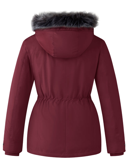 Women'S Big and Tall Winter Coat Recycled Waterproof Puffer Jacket Windproof Hooded Parka Jacket Wine Red 2XL